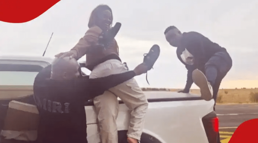 Nk’uko Tuko yabitangaje, ayo mafoto yagaragaje aba bantu batatu bambaye imyambaro isa, bagaragaza ubusabane n’urukundo mu buzima bwabo bwa buri munsi.