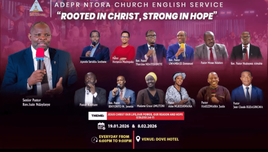 Itorero ADEPR Ntora Church English Service ryatangaje ku mugaragaro gahunda idasanzwe y’ibihe byo kwigishwa no gukomezwa mu ijambo ry’Imana, bizaba bifite insanganyamatsiko igira iti “Rooted in Christ, Strong in Hope”bisobanura Gushingira muri Kristo, Gukomera mu Byiringiro. Iyi gahunda igamije gufasha abakristo gukura mu kwizera no gukomera ku byiringiro bafite muri Yesu Kristo.